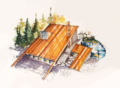 2-Interior and exterior sketch with details and colors. 600dpi.